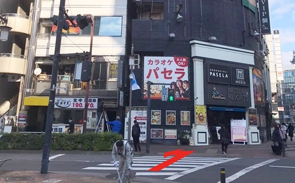 カラオケ店が見えたら交差点を左折する。
